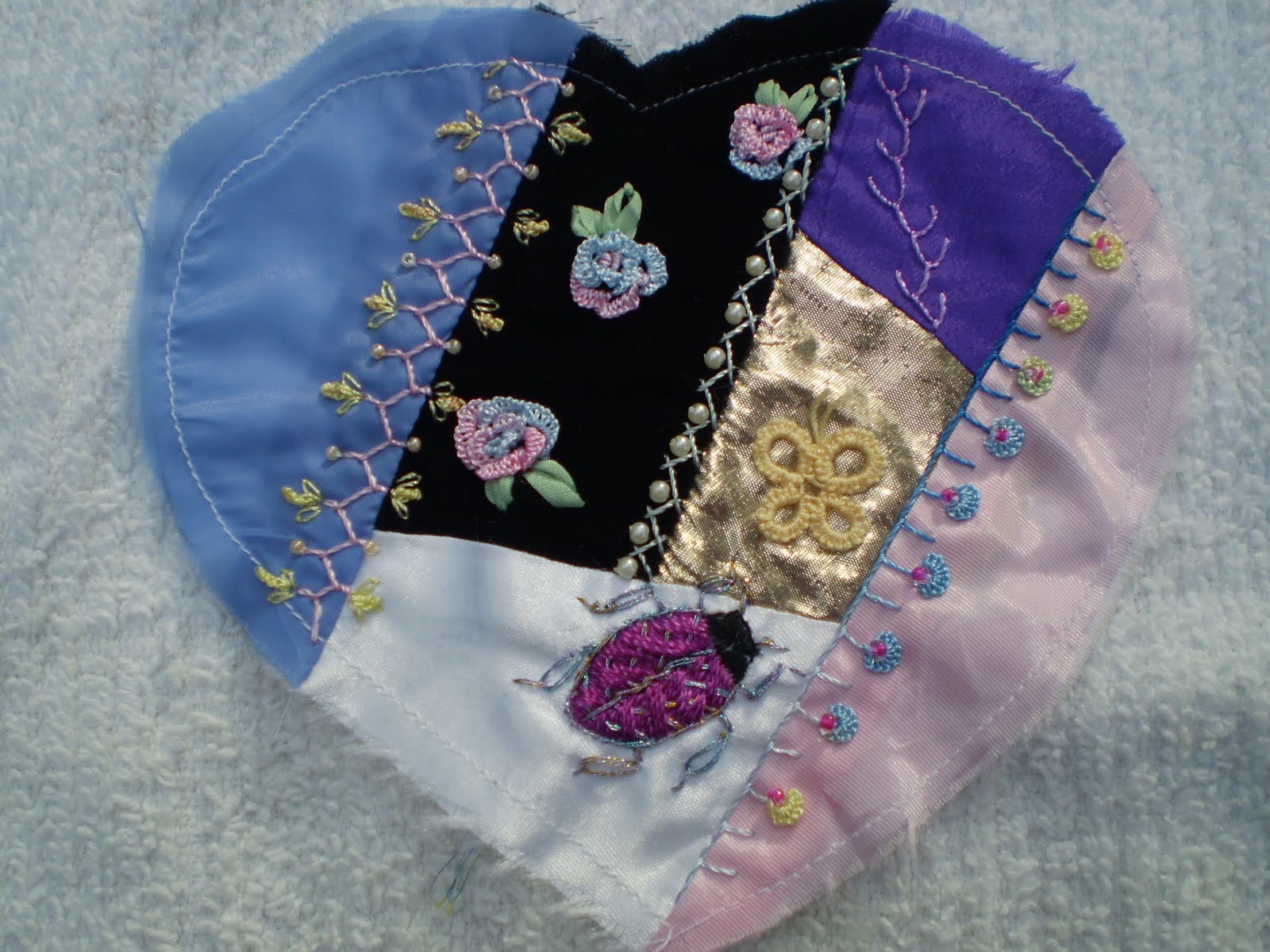 Hi I just added some photo's to my photo stream on Flickr. I have finished some new hearts this week and I will try to post them later. I am so into this embroidery and crazy quilting that I can't stop. I enjoy looking at everyones blog and also there photo's on flickr. I am enjoying being at home and just working on the things I love.