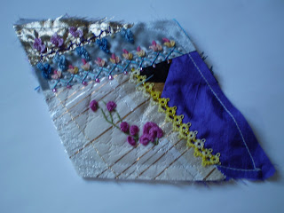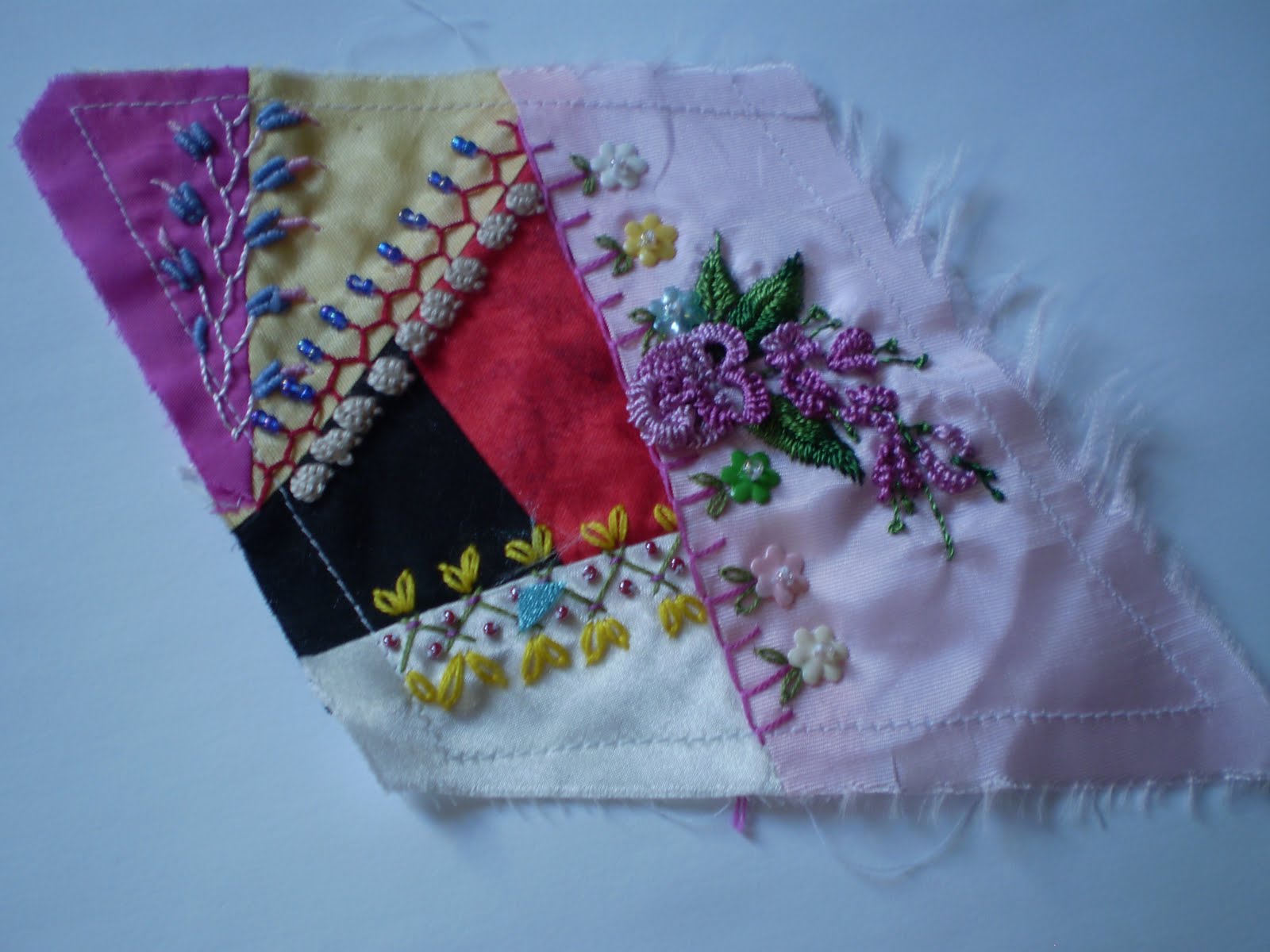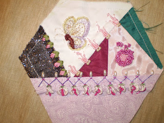 These two blocks I have finished and appliqued them down on white fabric. I think the white backround really shows all the beadwork and embroidery.