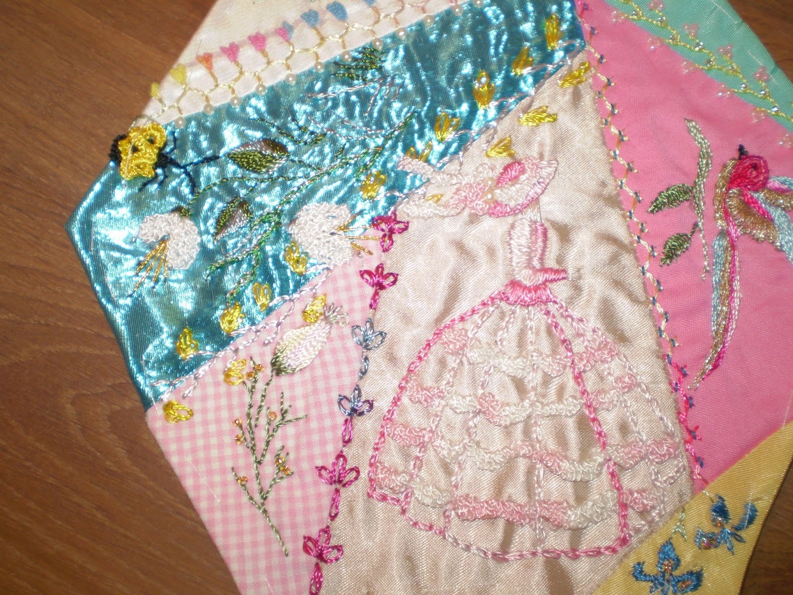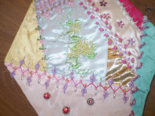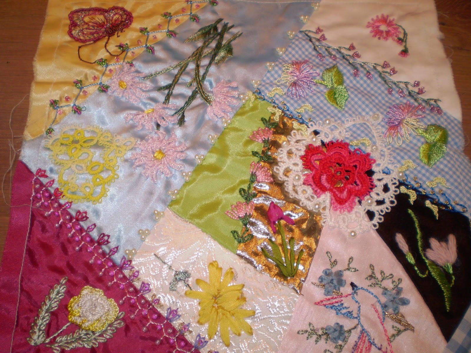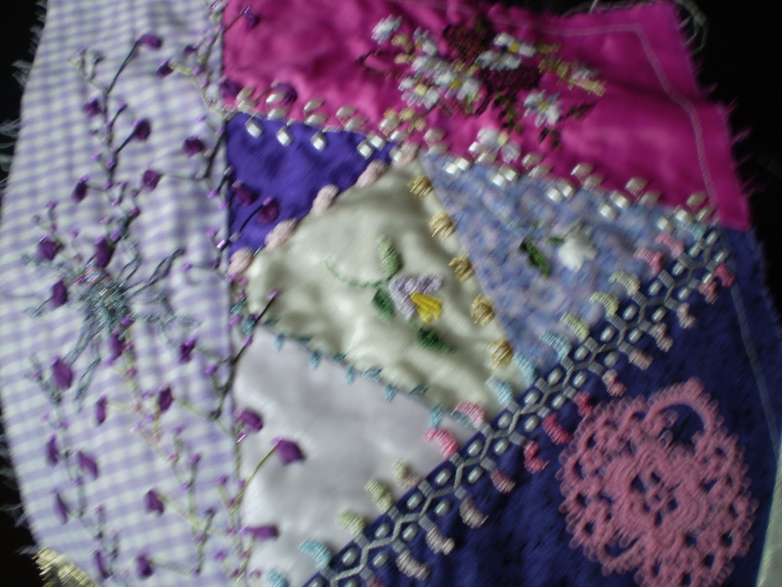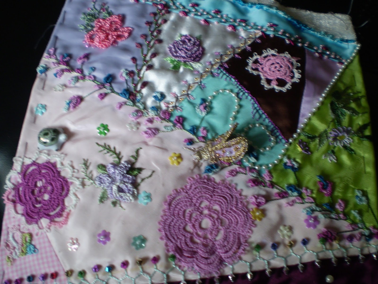 Hi welcome to my blogg. I just changed all my colors on here today and rearranged some things. I must say I haven't crazy quilted or embroidered in 6 months. I am going crazy with tatting. I can't even leave the house without taking it with me. I just find tatting so relaxing to do and it works up so fast. The pieces turn out so beautiful that I can't wait to start the next one.